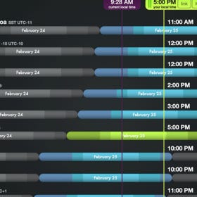 Time zones can hurt your brain. I came across a nice visual tool that shows you the time of day, “acceptable” meeting times, and more across time zones. Definitely worth bookmarking.